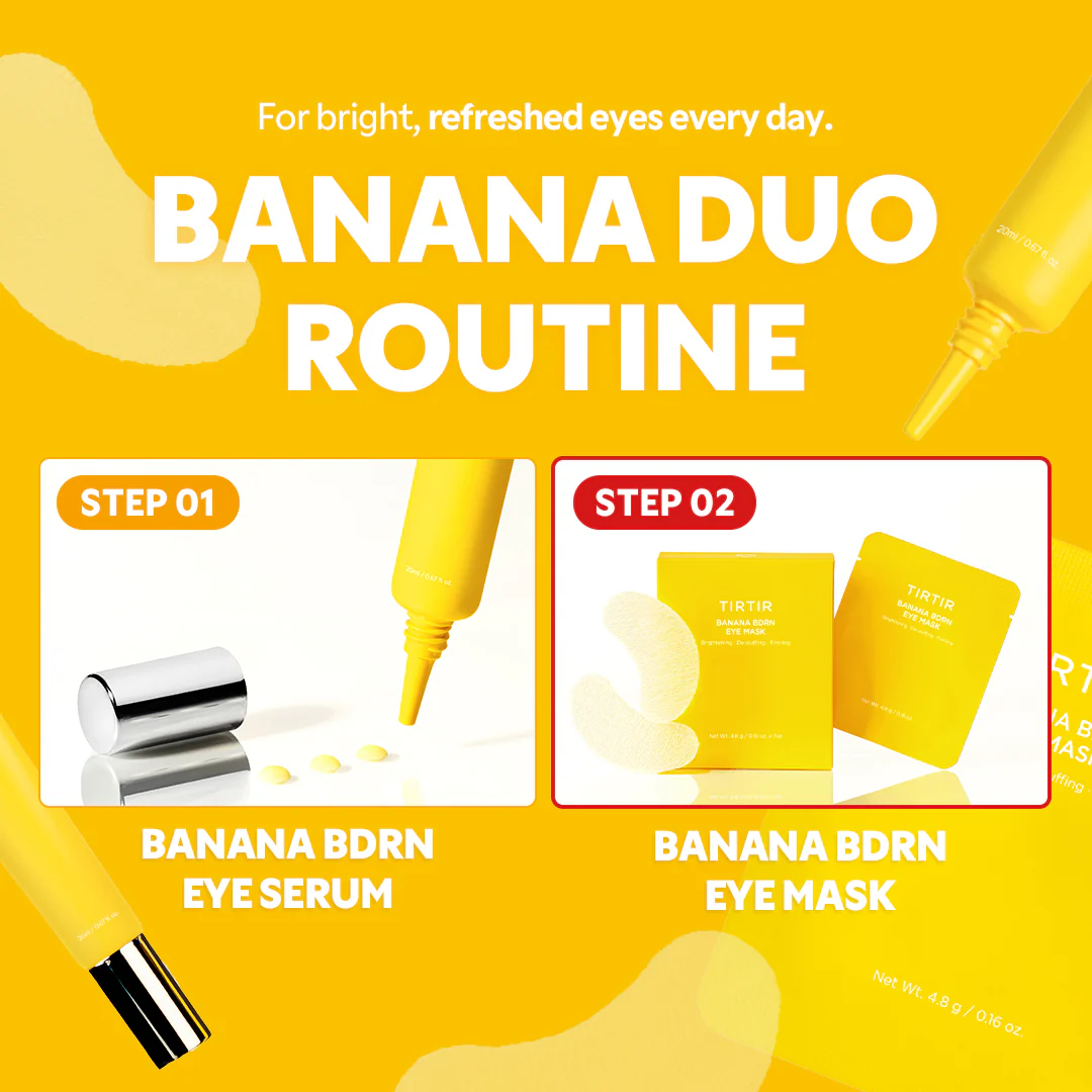 The TIRTIR Banana BDRN Eye Mask combines high-concentration Banana PDRN with innovative compression threads in a hydrogel format. This "bandage" mask wraps tightly around your contours to provide immediate lifting and deep, moisture-plumping effects that last long after removal.